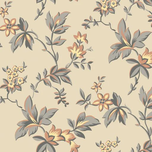 På 1920- och 1930-talen blev fantasiblommor moderna igen efter jugendtidens naturtrogna växtvärld. Denna tapet med sitt stora, yttäckande blommönster i mjuka, dämpande kulörer är typiskt för tiden. Förlagan är funnen vid renoveringen av ett hus i Tierp i Uppland.