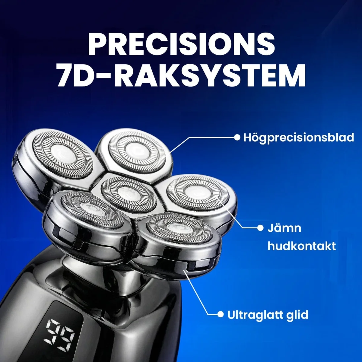 Rakapparat 7D för huvud och ansikte som ger nära rakning och komplett grooming