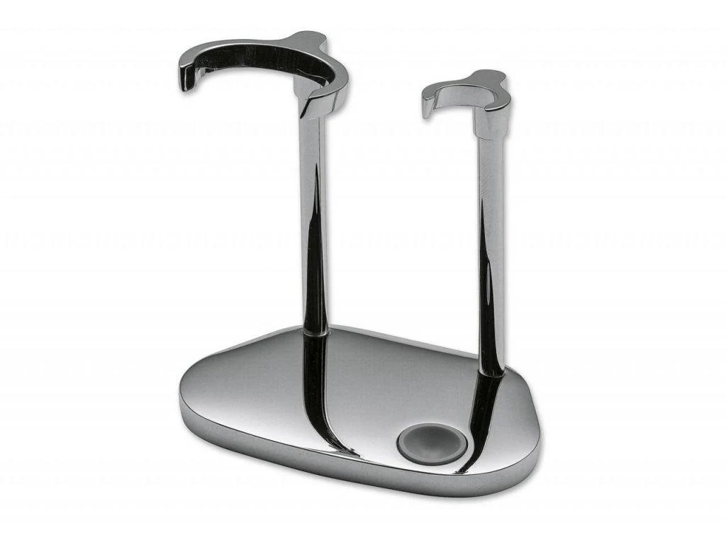 Stilren kromad hållare för din rakborste. Hållaren har en kromad hel fot för att stabilt hålla din rakborste och rakhyvel på plats. Stället är 9.3cm högt och är näst intill ett måste för att hålla din rakborste i riktigt fint skick.